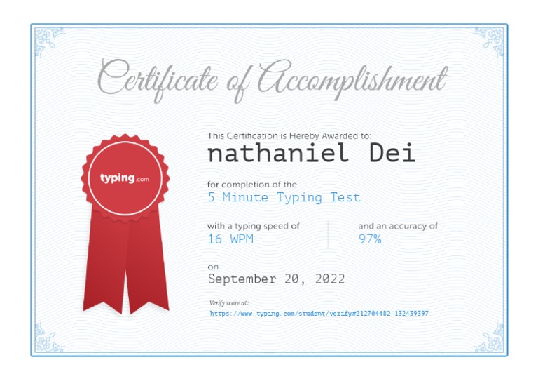 Typing Test Certificate PDF