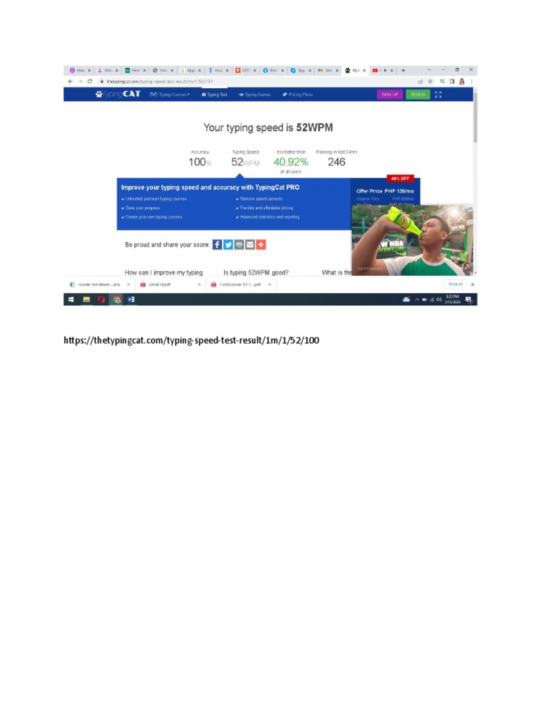 As you progress through typing.com, we track your most troublesome keys. Learn your wpm speed and accuracy with a 1 minute typing test. Test your wpm and accuracy with a free 2 page typing test. Take this 1 page typing test as many times as you like, and be sure to show off your best results with our shareable certificate.