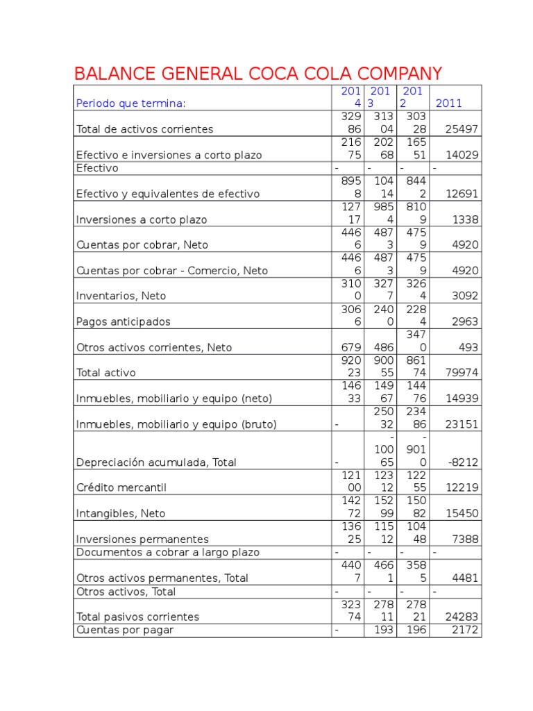 Balance General Coca Cola Company