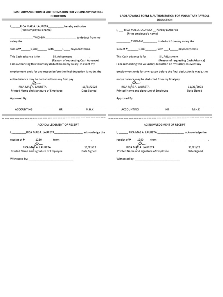 Cash Advance Forms PDF Payroll Payments