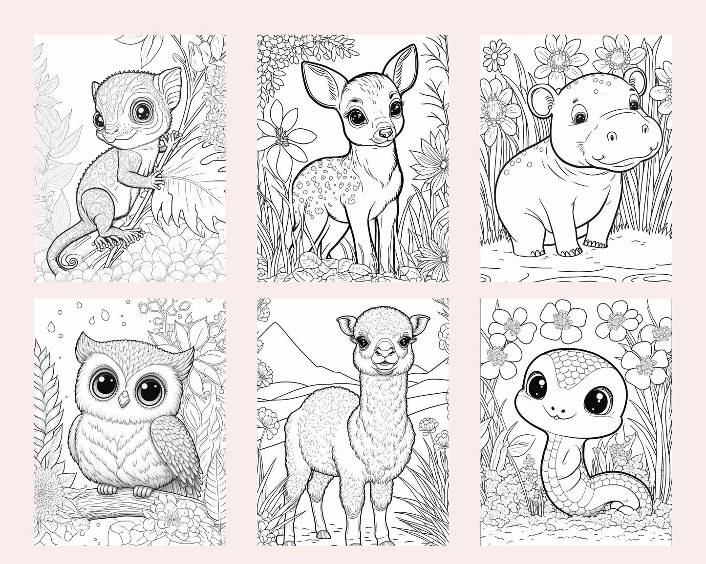 60 Cute Animals Printable Coloring Pages for Kids, Printable PDF File