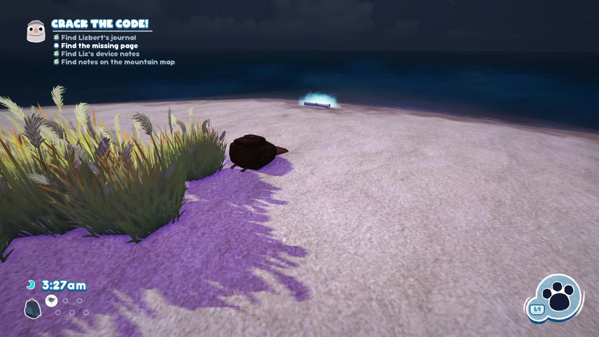 Follow it to the area where the sherbie is, and you'll find the missing page on the ground. Simply reach boiling bay and head. Go to the sout of snaxburg. That’s where you’ll find the missing page that helps you progress through bugsnax’s crack the code quest. Find gramble somewhere near the beach.