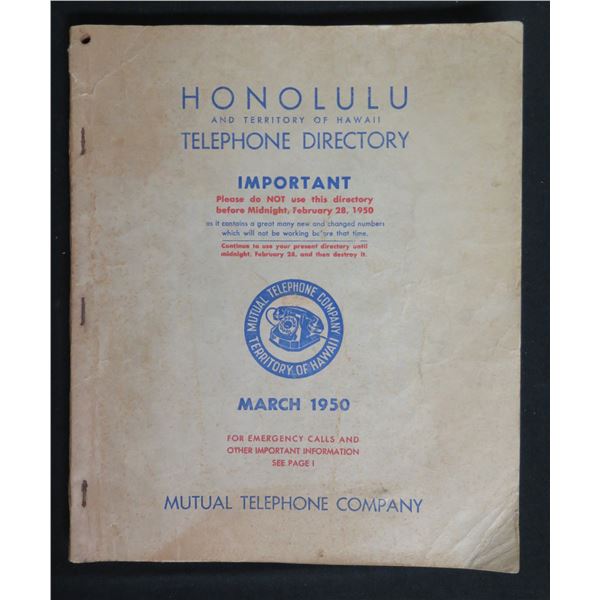 Honolulu & Territory of Hawaii Telephone Directory March 1950 Book