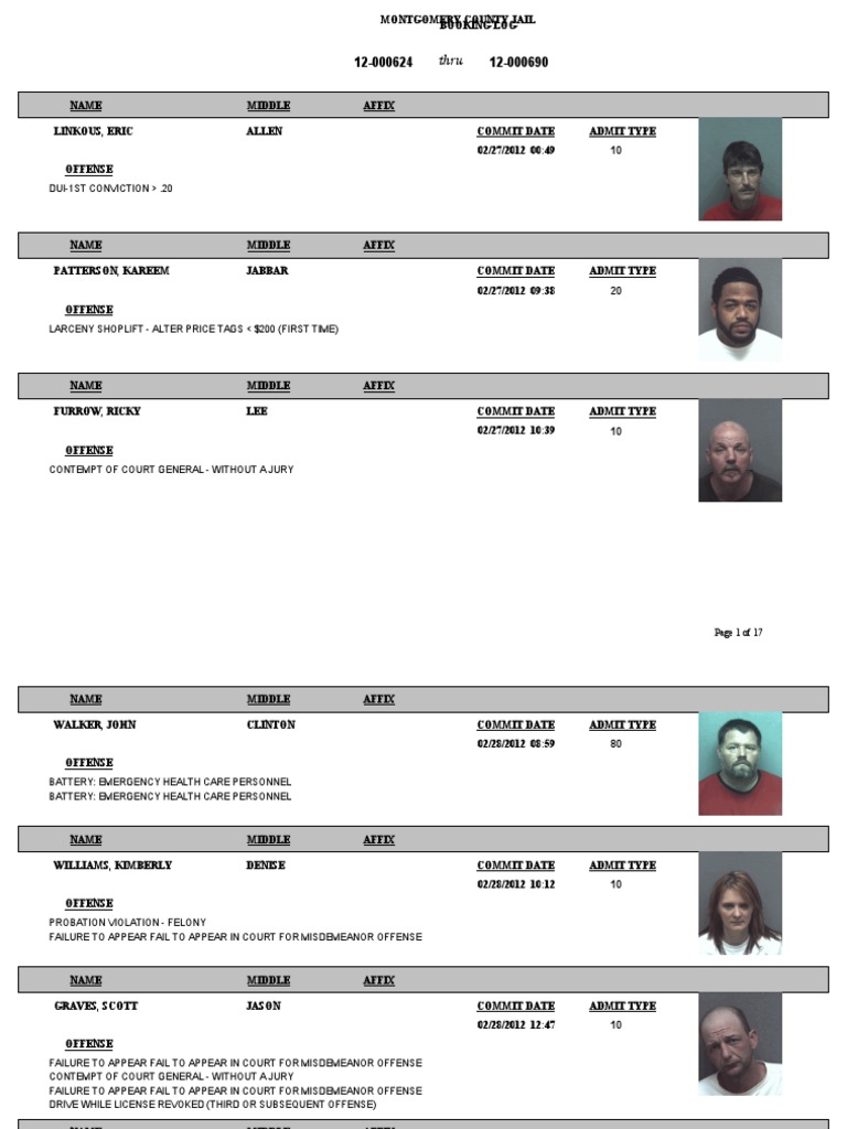 MONTGOMERY COUNTY JAIL BOOKINGS montgomery county police reporter