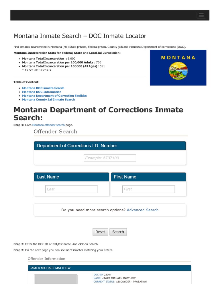 You will then see a list of matching inmates with their birthdate and. Simply enter the first and last name or the offender’s doc id. There are three different ways to search for someone in this database: Inmate search in montana is a vital process for accessing information about individuals incarcerated within the state's correctional. The offender search service searches.