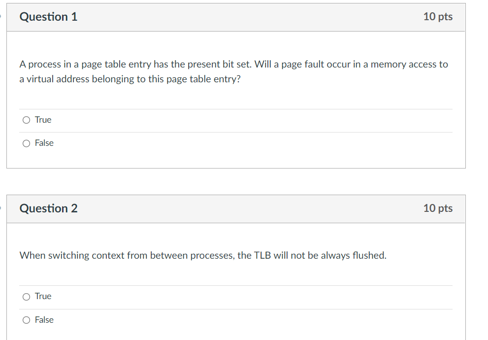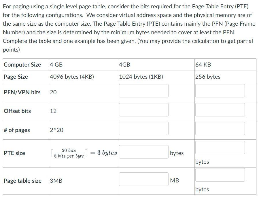 2^12 is 4096 (4kb), so out of those 32 bits per page table entry, 20 bits are used for the address and the other 12 are used for various flags (for example, a bit that the os can clear. So, the entry refers to page table entry (pte). Your answer (but not question). The data stored in each entry is.