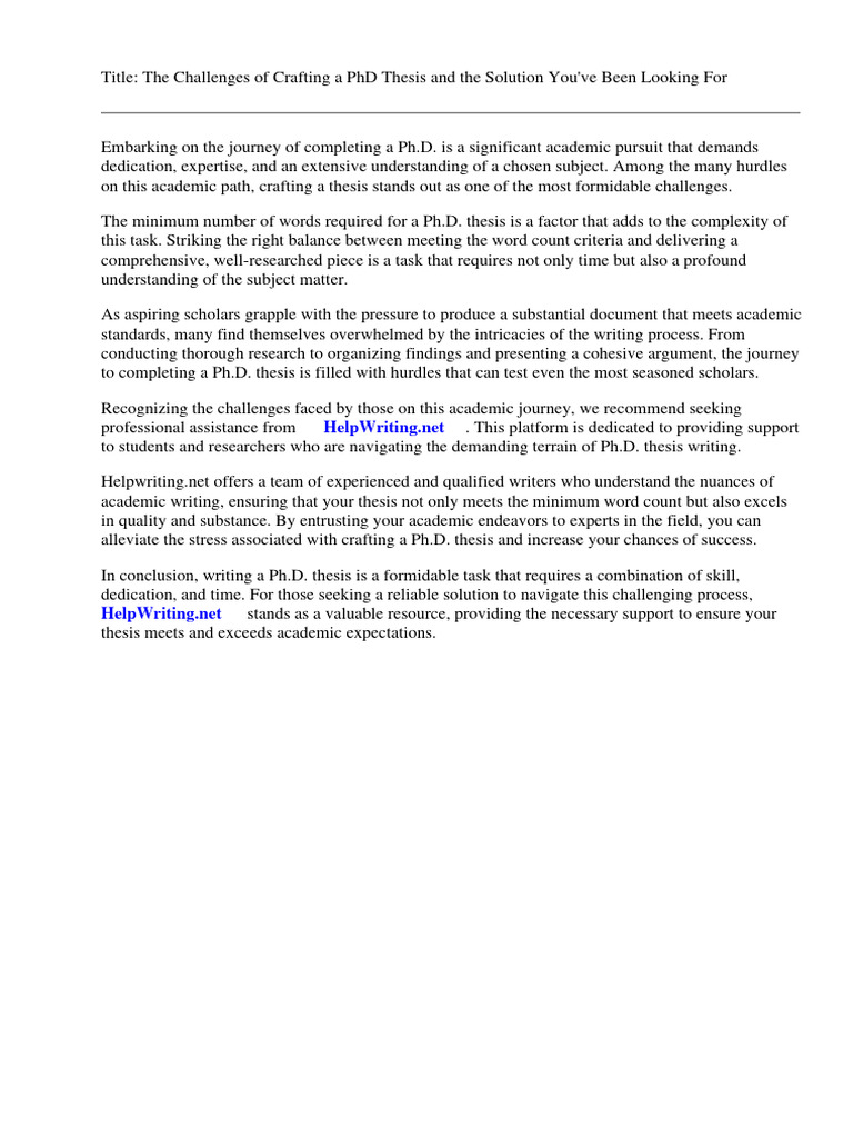 PHD Thesis Minimum Word Count PDF