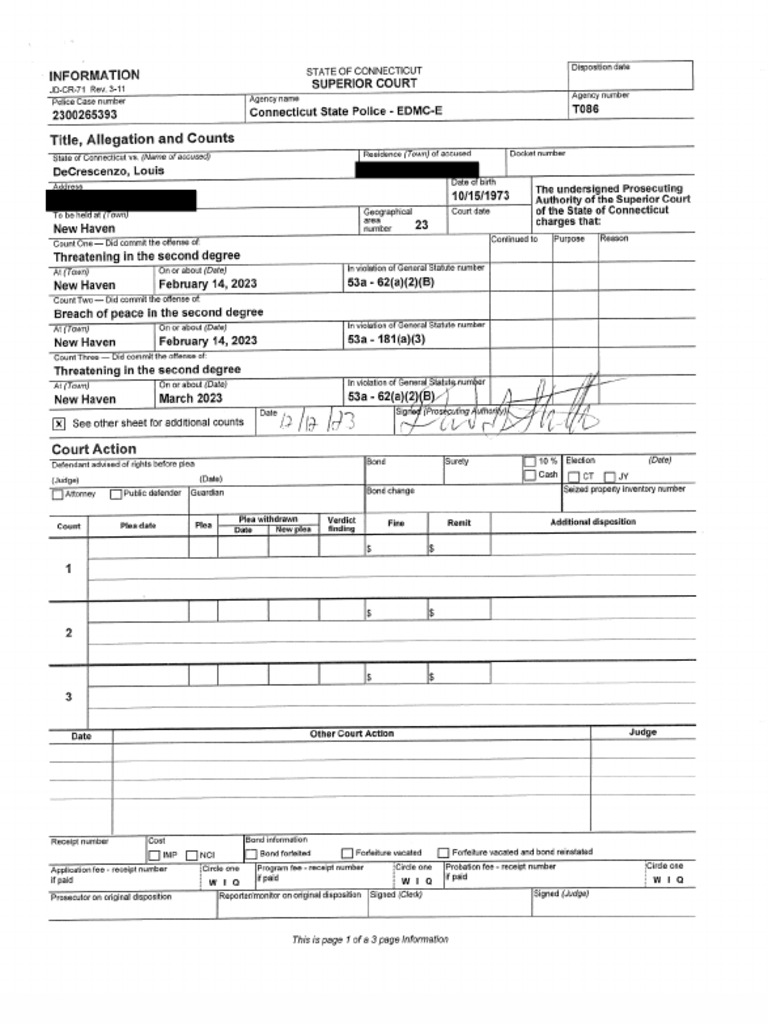 Connecticut State Police Arrest Warrant For Louis DeCrescenzo PDF